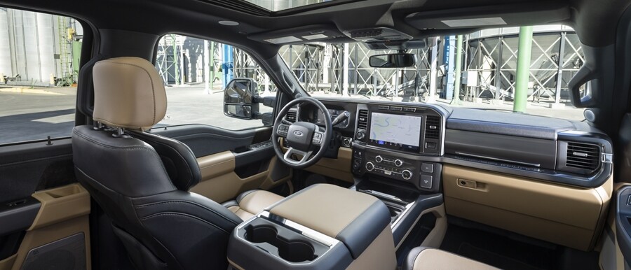 Whether it's work or recreation, the 2024 Ford Super Duty® truck delivers all the bells and whistles in an interior. With available deluxe features that include premium leather seats, available 14-speaker B&O® Unleashed Sound System by Bang & Olufsen®. Along with unique appliques, charging outlets throughout and an available twin-panel moonroof.